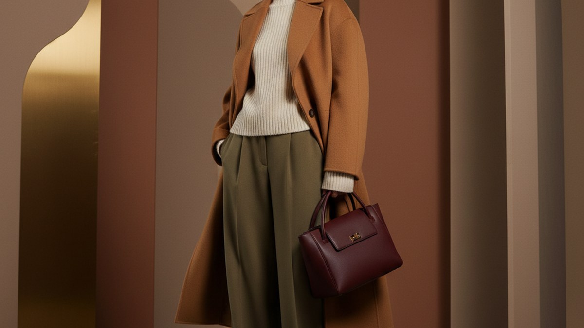 Le camel revient en force cette saison, mais dans des versions plus chaudes, presque dorées. Associé au chocolat — un brun intense et gourmand — il compose des harmonies sophistiquées qui conviennent à tous les types de carnation. J’ai personnellement craqué pour un ensemble camel et chocolat repéré chez Max Mara : un manteau droit ceinturé porté sur un pull col roulé brun, d’une simplicité magistrale. Ces neutres chauds sont parfaits pour construire une garde-robe qui traversé les saisons.